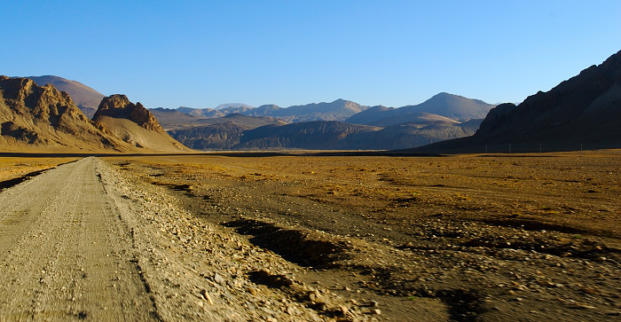 在西藏,很多地方是由这样的“搓板路”连接起来的。路况当然不像柏油路那样好,但已经可以开到80公里的时速,还能抱怨什么呢?司机小赵说,开上了搓板路,就可以享受免费按摩了,嘿嘿。