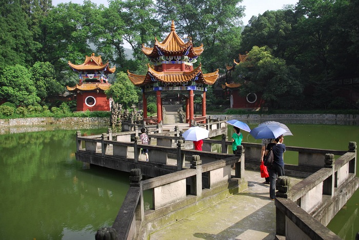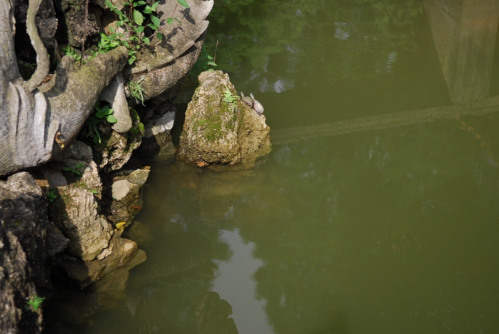 自曲桥过放生池,听说池中有数百只龟,皆为施主赎来后放入,而且这些龟会经常出来晒太阳,不过我们一早只看到几只。