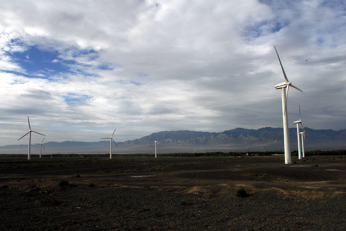 这里的风力发电发展很快,沿途有大片的风电场。据说是中国最大的风电实验基地。