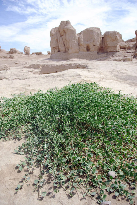 在荒漠化的故城中,这是唯一的绿色。大家称其为“野西瓜”。