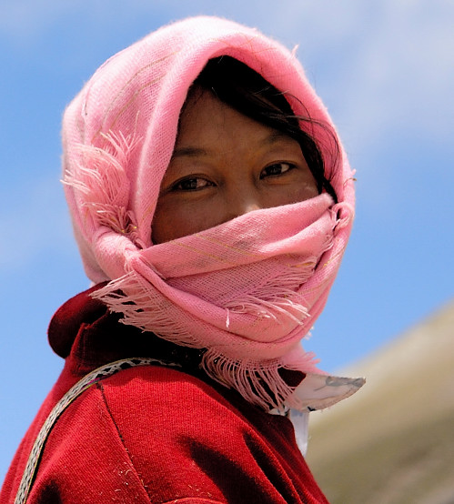 带面巾且无语的女人,让人感到十分神秘。
