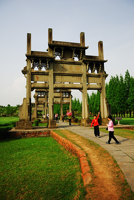 这里的牌坊共7座,从这里看过去,一直到小亭子前,可以看到3座。小亭后,尚有4座。